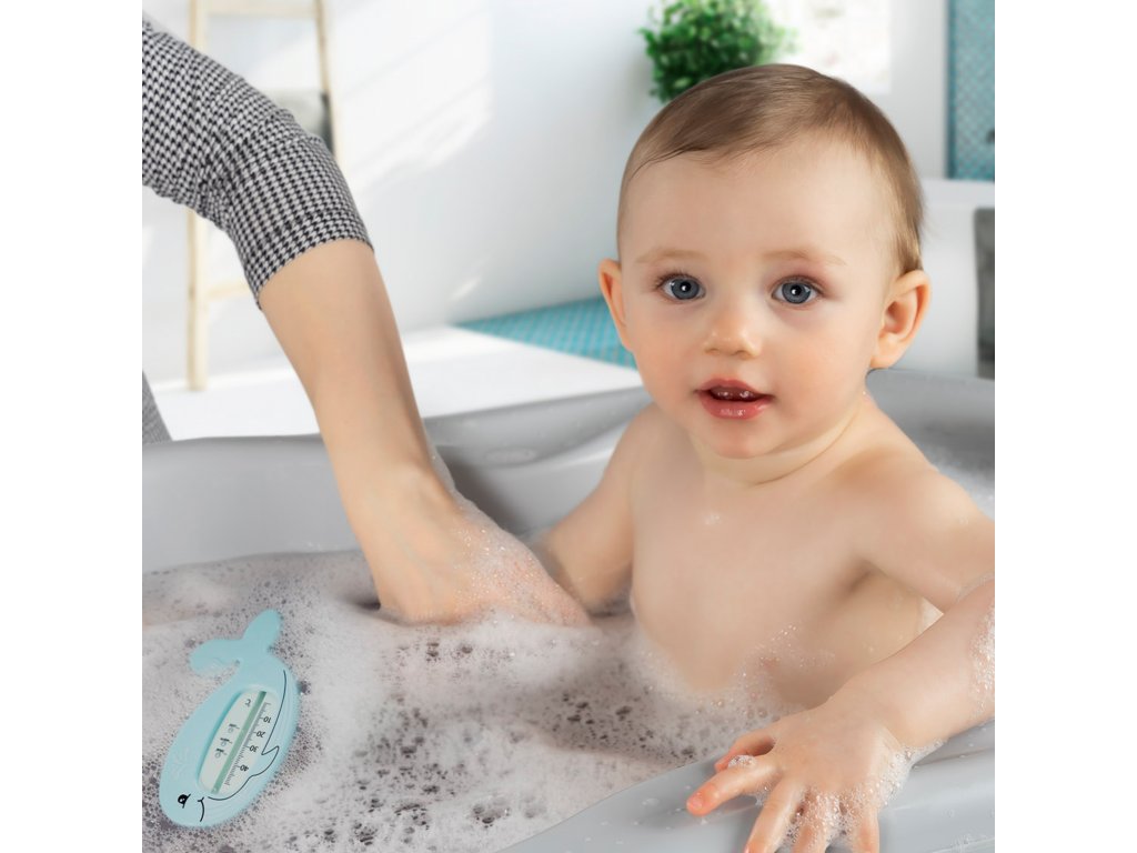 Teploměr má přehlednou stupnici, díky které lze okamžitě vyčíst teplotu vody. Pro ještě snadnější kontrolu jsou na stupnici vyznačeny symboly/emotikony, které ukazují, zda je voda příliš studená, horká, nebo má optimální teplotu. Rodiče tak mají jistotu na první pohled.