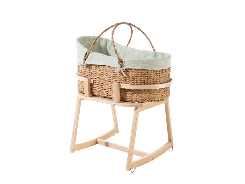 Koš je vyroben ze 100% tkaného vodního hyacintu. Textilní potah a potah matrace je ze 100% biobavlny (certifikace GOTS). Jsou snímatelné a lze je prát na 60°C.