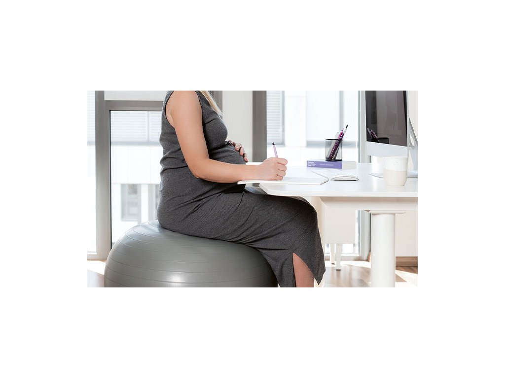 Sedíte často u stolu? Pak si brzy všimnete, že se s rostoucím bříškem mění i vaše držení těla – horní část těla se sklání dopředu a záda trpí. Abyste ulevila zádům a zmírnila napětí, můžete běžnou židli vyměnit za sedací míč. Ten podporuje vzpřímené držení těla, což má pozitivní vliv na zádové svaly, a zároveň nabízí měkčí sezení, což oceníte zejména tehdy, když je miminko už hluboko v pánvi nebo je oblast kolem pochvy po porodu citlivá.