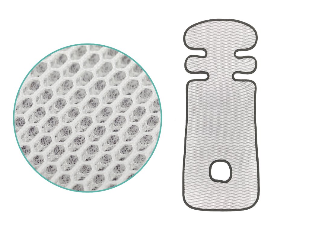 Zadní strana podložky má speciální strukturu, která umožňuje cirkulaci vzduchu a pomáhá udržovat příjemné klima při sezení. Měkký froté povrch na přední straně poskytuje dítěti maximální pohodlí během jízdy.