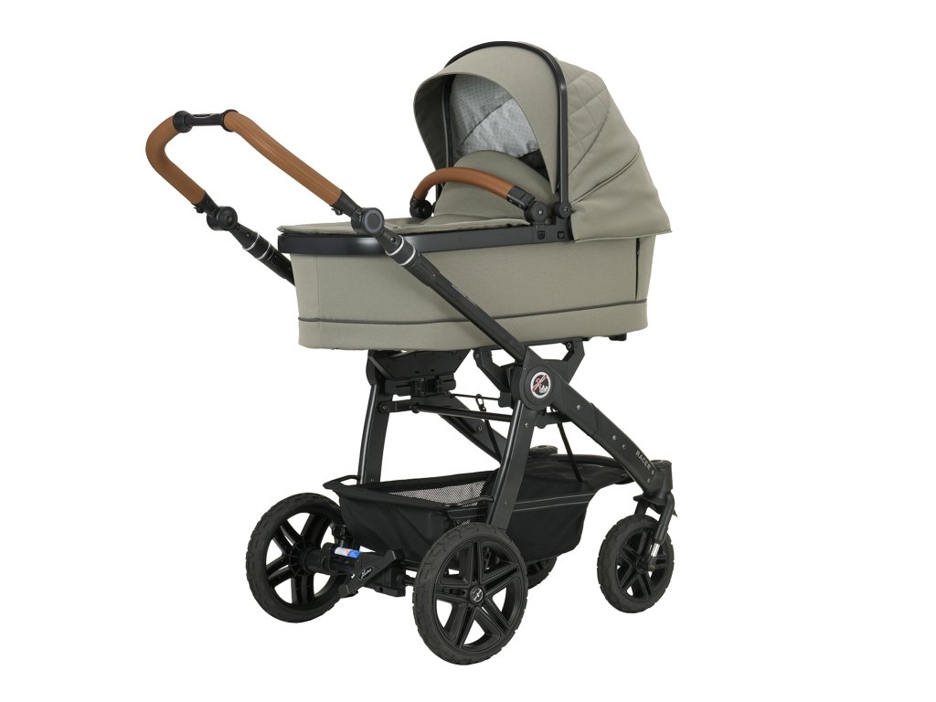 Nastavitelná a prodloužitelná opěrka nohou se flexibilně přizpůsobí růstu Vašeho dítěte. Výškově nastavitelná rukojeť se snadno přizpůsobí Vaší výšce a zajistí příjemné, ergonomické vedení kočárku.