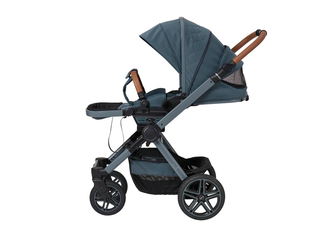 Velká kola kočárku (21,4 cm vpředu / 27,6 cm vzadu) zajišťují výbornou ovladatelnost a hladkou jízdu. Snadno tak projdete užšími místy, vejdete se do menších výtahů nebo v klidu projedete rušnými pěšími zónami, což v každodenním provozu oceníte.