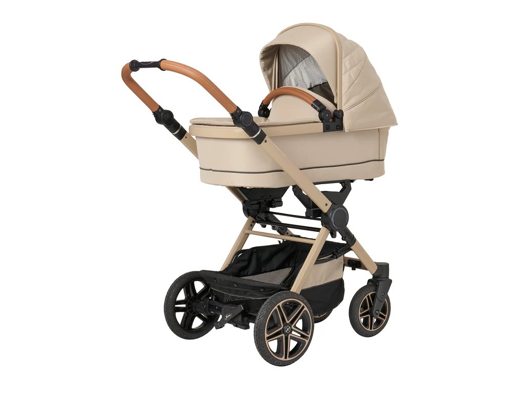 Velká kola kočárku (21,4 cm vpředu / 27,6 cm vzadu) zajišťují výbornou ovladatelnost a hladkou jízdu. Snadno tak projdete užšími místy, vejdete se do menších výtahů nebo v klidu projedete rušnými pěšími zónami, což v každodenním provozu oceníte.